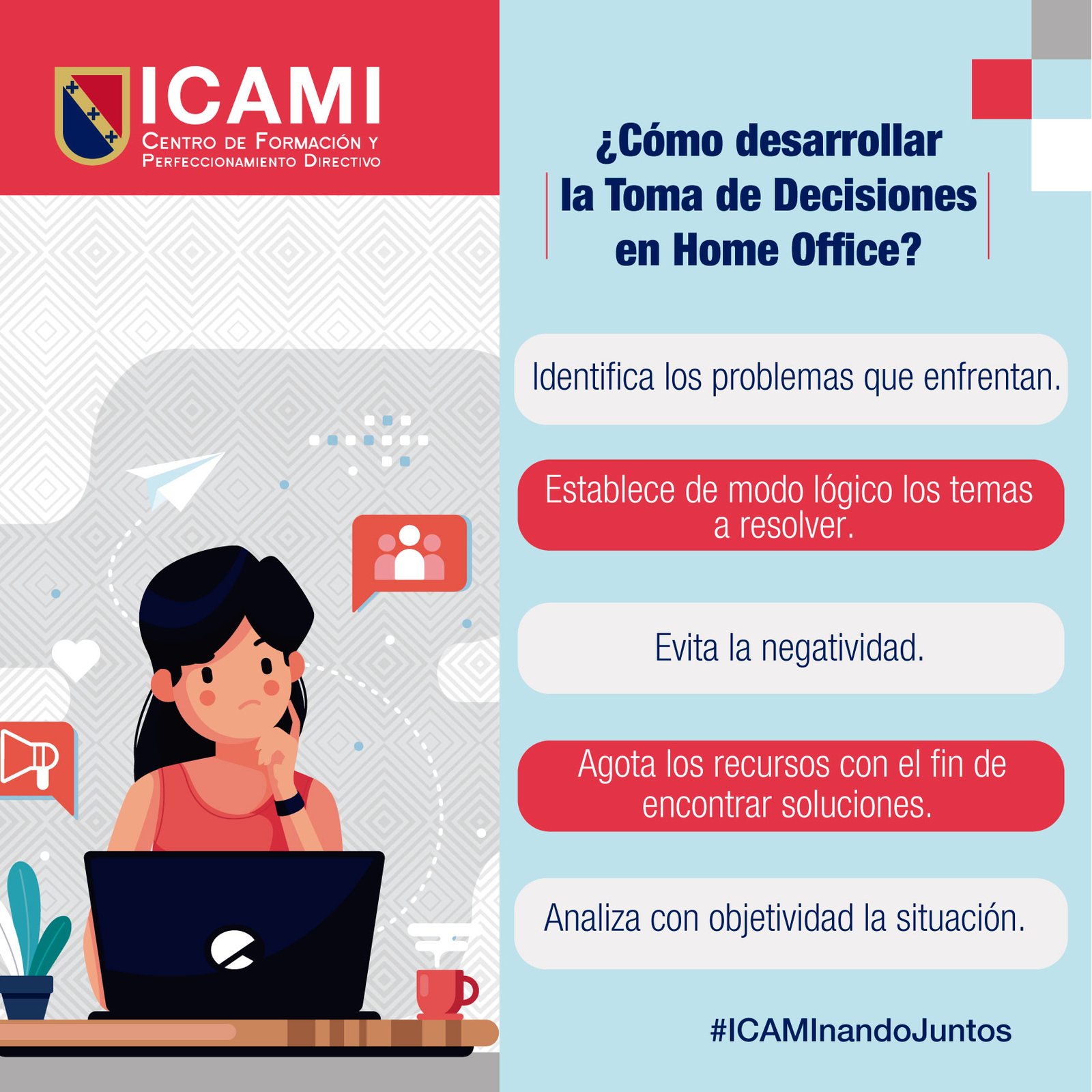 #NIVELICAMI Trabajar desde casa resulta más complicado de lo que parece. Las cuestiones de distancia en ocasiones nos pueden llegar a impedir tomar buenas decisiones. Compartimos algunos puntos que te ayudarán a tomar mejores decisiones desde casa.